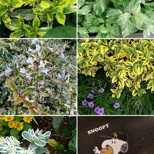 庭の花💮でスヌーピーの日参加させて頂きます〰♫ ②~⑤出会った樹木✴️ アオキ📛有り~斑入りアオキ/ミズキ科✻雌雄異株・陰樹 目隠しにも🆗✨その隣の樹木はカナメモチかなぁ🤔新葉が清々しぃ〰🧚♂🎶 🏷️毎月2日はスヌーピーの日 🏷️チームスヌー 🏷️2のつく日は斑入りの日 🏷️斑入り見つけ隊♪No.19 🏷️心にメローイエロー 🏷️コラージュ仲間たち 🏷️スライドショー♪