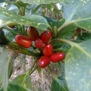 斑入りアオキ。 花がない冬場には よく映えます♪