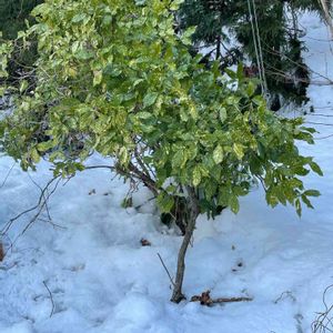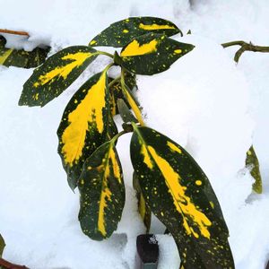 雪の中☃️ 💚斑入りアオキ💚💚🍃 📸 2022.01.08