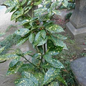 神社の斑入りアオキ