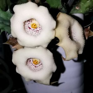 フェルニア ブライデリバレンシス 白系のガガイモ! 3つ咲いてたのでパチリ!📸 蕾も沢山付いてるのでまだまだ楽しめそう!