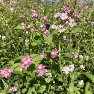 ヨシが群生する湿地に咲いていた淡いピンク色の可憐な花。 検索したら「ヒメジソ」らしい。