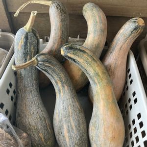 今日のお花「カボチャ」。 "ふるさとの森公園"のそば処ふれあいの舎で初めて見た「ツルクビカボチャ」。 10月15日に撮影。 普通のカボチャの花は7月6日に流山市内で撮影。