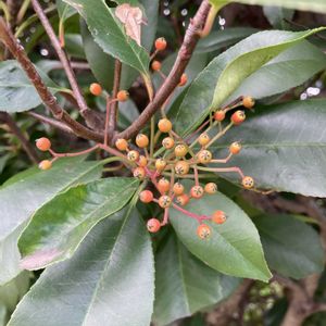 公園の駐車場の生垣にオレンジ色の実がたくさんなっていた。 撮影してからもう10日も経っているから今では真っ赤に色づいているだろうか。