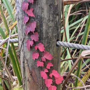 山林に自生し、鮮やかに紅葉する「ツタ」。