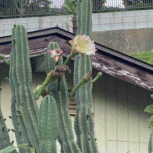 散歩道で見かける「柱サボテン」の花が今年も咲いていた。