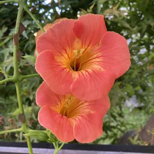 今日のお花「ノウゼンカズラ 」。 散歩していると、ひと月ほど前からよく見かける花。