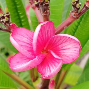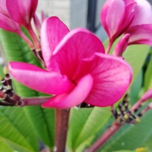 去年迎えたプルメリア・マリカ 綺麗な赤です 白っぽく写ってるけど、蕾と同じ色ですよ〜❣️ 去年は屋内暮らしが長かったのか、淡いピンクでその後の花は濃くなってきたけれど、全然違う。 今年はずっと太陽の元、育ってました。 🏷️金曜日の蕾たち