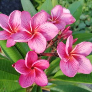 プルメリア・マリカ 2輪目がいきなり5輪に増えて嬉しい 夕方には赤みが薄れ、中心がまあるくオレンジ色 とてもお洒落な色合いですプルメリア