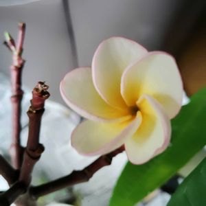 プルメリア・マリカ 家に入れたらこんなに薄い色に成りました。 量光不足の色です