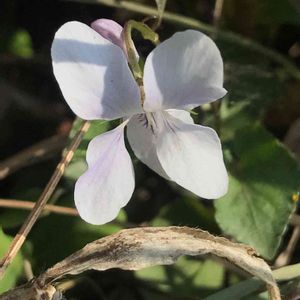 オトメスミレ(乙女菫) タチツボスミレの花が白色で、距だけが淡紫色になる品種です。 名前の通りに、清楚で気品のあるお姿ですが、この名前は花を乙女に例えたということではなく、牧野富太郎先生が箱根乙女峠で発見したことによるそうです。 乙女という名前に憧れて、ず〜っと会いたかったスミレです💕 名前の由来は思っていたのと違いはあれど、出会えてとても嬉しいです🥰