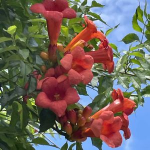 ❤️ノウゼンカズラ❤️ 先週のフラワーロード散歩🚶♀️〜 オレンジ🧡のノウゼンカズラは よく見かけますが❤️赤色だったのと 至近距離で撮りやすかったので🤳 この花が咲いていると☀️夏☀️って 感じですね🥵