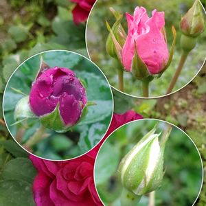 🏷️金曜日の蕾たち 薔薇の蕾が少しずつ膨らんできました⤴️ これから薔薇の季節です💓 そろそろ、梅雨入りしてしまうけど😅 皆さんの薔薇🌹を見せてもらっていると増やしたくなります🌹✨ 1年に1本お迎えしようと、今年は深紅のつもりでしたが、昨年お迎えした紫色に近い赤でした🙄💜 ネット購入の写真って、正確な色味は難しい🤔 けど、結局はキレイだから良いんですけどね⤴️😊💓