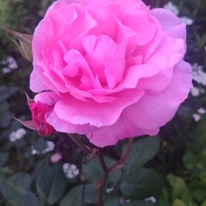 こちらも、 夕暮れの・・・バラ🌹 薄暗くなってからの庭に ピンクのバラが光ってます😆⤴️ 新しいシュートからの花は色が濃いみたいです💗👀💡