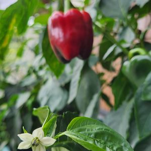 軒下のパプリカ♥️ 白い花も何個か付いています♪̊̈♪̆̈ やっと赤❤️が色づきました😃✌️✨ 黄💛に比べて…亀さん状態で💦🐢💨 何個かは途中で穴が空いたりと苦戦しましたが待った甲斐がありました🎵✨ 職場のみんなもパプリカ作っているけど色づくのが待てれなくて採っちゃった!って言う人ばかり🙄💭 なんで待てないか不思議です🫨?? 🏷️白い水曜日♡ 🏷️素敵な水曜日 🏷️グリーンアクセサリー♪