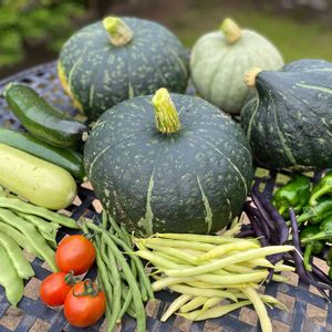 野菜部👩🌾 今朝の収穫です。 江戸崎カボチャは二個 栗カボチャ 雪化粧です。 どれも茎がコルク状になってました🎃🎶 モロッコも初収穫 サニーレタスが🥬とうがたちタワーのようになって、苦くなったのでこれからは、この野菜達にバトンタッチです🤗🎶