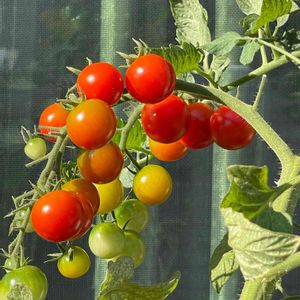 早朝、畑へ…… 中玉トマトのグラデーションが きれいです。 ミニより食べ応えがあって、 大玉より早く熟すので、良いとこどりです。 今年は、カラスに食べられていません。 少し皮が硬いけど、真っ赤な完熟で、 食べられるのは、幸せです。
