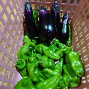 実家の畑で収穫した野菜たち ピーマンもトマトも終わったそうです😩残念 今日、天ぷらにする予定☝️ 母は少し入院してて、畑にずっと行けなかったのよ それでも育ってくれてありがとう😊だね しかし、ゴーヤは黄色くなり、ナスは地面に着き、オクラは種になってました😅 もちろん草もボーボー😭 ふふふ☺️良さそうなところを少し貰ってきました😄
