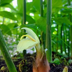🌿半畳位の我が家のミョウガの森 毎朝地面からぷっくり顔を出しているのを見つけてポキっと採るのが楽しみでした 今年は沢山採れて友人達にお裾分けも出来ました🤭 今朝 取り残したミョウガの花がいくつか咲いていたので🤳パチリ (*˘︶˘*).。*♡♡♡