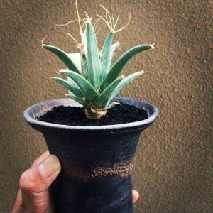 晃山 アガベのようなカクタス 前からいてた子吹き晃山が調子崩してしまって、養生中のところに縁あってやって来た小ぶりの晃山^ ^ 大切にします! エフクオーレさんにてGETしたイカした信楽焼と