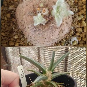 断崖の女王植え替えました 塊根が植木鉢ギリギリで根っこはどうだったかな とにかく2回りくらい大きい鉢に 下は最近やっと見つけたサボテン晃山 アガベに似てるので混同されることもあるらしいです ずっと探していてやっとこ レウクテンベルギア属で 1属1種だけって言うところが珍しいのかも 大きくなってくると幹が塊根になって来るらしい 記録用に投稿 フォロアーの皆様方におかれましては ほんとに暇な時にお付き合い頂ければ幸いです どうぞお気を使わないようにお願い致します