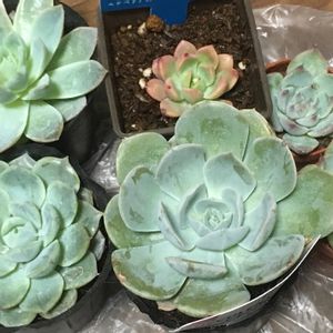 ダイソー エケベリア 名前教えてください🙏 ヘラクレス、マッコスはちゃんと名前が着いていたけど、この子は【エケベリア】と書かれただけ。 葉は厚みがあり、爪はほんのわずかにあります。 うっすら粉あり。 たくさん子株がついてました。