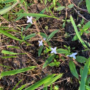 メリケンムグラ アカネ科オオフタバムグラ属 なかなか咲いたたところに会えなくて😅。暑い❗から? 午前も夕方も散歩で、畦道で見かけるのにいつも、閉じてる😫。 おかげで、名前を探すのに四苦八苦しました😅 🔎と、可憐なムグラ属のお花を咲かせています。咲いたお花は、また、そのうちに…出会えたら🤗
