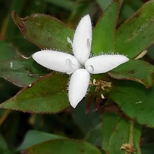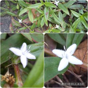 散歩道‥🚶♀️ 池のほとりで見つけました👀 ツルアリドオシでしょうか? お花はツインの子もシングルの子も‥ 葉っぱがたまご型ではなく やや細長いのですが‥ 教えて下さいm(_ _)m GSさんに教えていただきました👍 「メリケンムグラ」のようでした♪ 訂正致しますm(_ _)m
