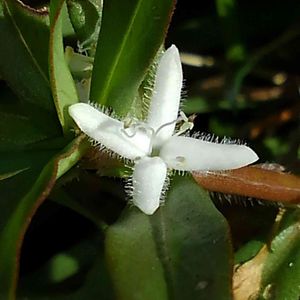 メリケンムグラです。 自然大好き派😘です。近くのフィールドに出かけて新しい花に出会うと嬉しいのですがほとんどが外来種です。この花も私にとっては初対面でした。海に面した砂浜でしたので海浜植物かと思いましたかが違いました😅。案の定、この花も北米原産の外来種でした😭。 花の大きさは1cmぐらいです。茎に毛が一列に生えていました。花はかなり拡大して写しましたが花弁にも白い毛が生えています。花はまあまあでしたが、繁殖力が強く在来種を脅かす存在になりつつあるとか。確かに繁茂しそうな感じでした。