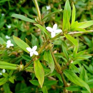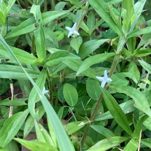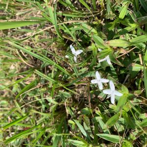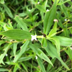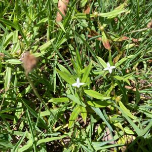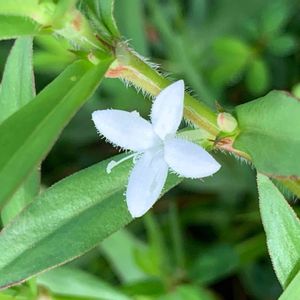 メリケンムグラ(米利堅葎)🤔🌱 分類:アカネ科 オオフタバムグラ属 別名:情報なし 開花時期:6〜9月 場所:湿地、河原、池、湖岸、水田 調理方法:情報なし 生薬名:情報なし その他: 湖岸で小さくて可愛い花を見かけました。 なんだかキラキラ光る星みたい☆彡.。 四角形の茎に細身の葉をつけ、基部で四方に分岐し、地面を這うようにマット状に広がり成長します。白い花には細かい毛の生えていて、茎から直接花が咲いてます。 毒性はなく、飼料に使われることもあるとの事。食べられそうだけど、情報がないので見送りです(*óㅿò*)シュン。。。