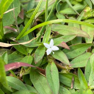 ‘’観察会~♫‘’ 田圃の畦道の湿った場所、マット状に生えていました💚🤍💚 初めての出会いです👀 メリケンムグラ(アカネ科) オオフタバムグラ属 直径1センチちょっとの純白の花です🤍 猫目線で👀~筒状の4裂した花冠の内側と縁に毛が密に生えていて…ビックリ😲 カワイイです🥰