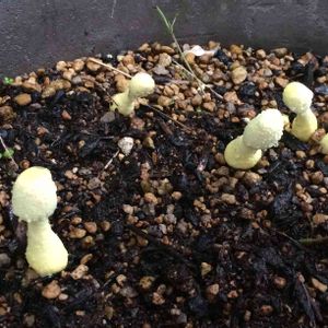 なんてキノコかなぁ? ミモザの木の下に出てました🍄 毒キノコかな?