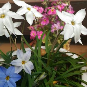 スイートアリッサムに続き、アイフェイオンの花の間からもキノコ出現! どこかから胞子が飛んでくるのかな。