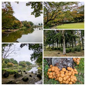 雨上がりの公園散歩🚶 モミジ🍁も薄っすら色づいてきました😊 見かけたキノコ🍄はなんだかわかりませんが豊作でした😅 🏷木曜日は木の日 🏷コラージュ仲間達に参加させて頂きます🥰