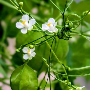 花散歩で✨ 🤍🟢🌿🤍💛⚪💚🤍💚🤍♪ 1️⃣風船葛 まだ青々と実とお花 2️⃣眉刷毛万年青 3️⃣白いキノコ 美味しそう😋 オオシロカラカサタケ🤔かな? だったら毒キノコ😩 4️⃣白花杜鵑草 5️⃣お茶のお花 今日も 笑顔😄で 過ごせますように💐