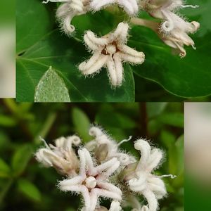 🏷木曜モフモフ シロバナガガイモ(白花鏡芋)の花がモフモフで可愛いです、10cm位の大きな実が弾けた瞬間も見たいです♡🌿 蔓性の多年草で、若い芽🌱は食用になり、種は薬用になります。 花冠 1cm位 キョウチクトウ科 ガガイモ属