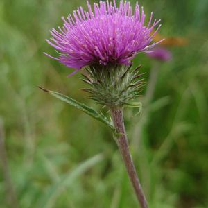 "まこS"さんの 🏷月曜日は元気色の花 池の周りに紅紫色のノハラアザミの花が咲き始めて綺麗です💗💜🌿 ノハラアザミの総苞は粘りが無く、総苞片は反り返らず斜め上に真っ直ぐ付いています。 自生地は中部地方以北です。 キク科 アザミ属