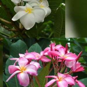 おはようございます😊🌄 🌼今日のお花プルメリア ピンクと白いプルメリアの花が可愛いです💗🤍🌿 プルメリアの花は色によって香りがいろいろですが、葉や茎を切った時の白い液体はかぶれる事があり有毒です。 🏷白い水曜日♡