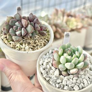 【パープルサブコリンボサの真相に迫る】 ガーデンメッセでお迎え。 右側の『ラウ』ではない『サブコリンボサ』をお迎えしました。 一部、コレが『パープルサブコリンボサ』だと噂されていますが… 『サブコリンボサ ラウ030』とそっくりのエッジがシャープでエッジとキールが赤く、パープルになる『サブコリンボサ ラウ030』の選抜種を『パープルサブコリンボサ』ではないのか?と考察します。 分かりやすように 左側の『サブコリンボサ ラウ030』と並べてみました。 ね。『ラウ030』の方が『パープルサブコリンボサ』とそっくりでしょ。 ※以前お迎えして紹介してなかったですね^^; 『サブコリンボサ アジュール』は エッジがハッキリしてなく少しぷっくりした葉で葉裏は赤いもののキールとエッジの赤もハッキリしていません。 ネットで見る『パープルサブコリンボサ』とは違うんですよね。 ネットはいい加減で間違えた情報もあるので 自分の目で見て確かめた情報しか信じませんけどね。 そもそも色の名前が入っている品名自体に疑問が残ります(個体差や環境や季節によって違うし、安易に勝手に品名を変えて販売してしまっているから) 逆に『サブコリンボサ ラウ030』っぽい『パープルサブコリンボサ』が間違えている可能性も… 後は、そっくりな『ディープパープル』を『パープルサブコリンボサ』として流通している可能性も無きにしも非ず。 しばらく育ててみてパープルに紅葉するのか? 『サブコリンボサ ラウ030』との違いを見ていきたいと思います。