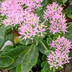 GS本日のお花「ベンケイソウ」 うちのヒダカミセバヤに色も形も似たような花を咲かせてましたね。 やや株も葉は大きいですね🌸