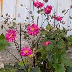 GS本日のお花「秋明菊」 日本では「貴船菊」の名前でもポピュラーなお花。 ①八重咲き赤花 ②白花 ③〜⑤お迎えしたピンク花 自生している秋明菊に比べて背も低くて花形はバランスのとれた感じがします。