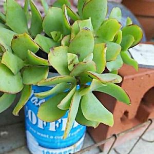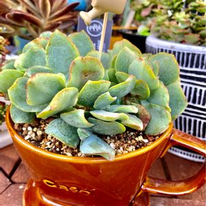 【クラッスラ属 アルボレセンス ウンデュラティフォリア リップルジェイド】 Crassula arborescens undulatiforia ripple jade 【クラッスラ属 ブルーリボン】 Crassula 'Blue Ribbon' ネームタグは【ブルーリボン】🏷️ ウェーブがかった明るい緑、 紅葉すると縁が赤くなり、 その名の通りリボンの様です🎀 しかし名前が長過き(@_@;) ハリポタの呪文みたいですね ラテン語で、 arborescensは「木のような」 undulatiforiaは「波状縁取られた葉」 rippleは「さざ波」 jadeは「翡翠」 …だそうです🌲🌳 「花月に似た姿は、繊細なイメージだが、生長すると1m弱になる 長らく花月の交配種と考えられてきたが、アルボレッセンス の亜種ということでひとまずの決着 その当初つけられていた Blue Bird の名で呼ばれることもある」 ☆Source☆ 【多肉植物専門店 ビスタ】さん https://pukubook.jp/detail/Crassula_arborescens_ssp_undulatifolia