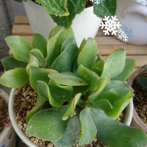 こんにちわ🙋♀️ 冷たい☔️が降っています😅 ブルーリボン クラッスラ属 葉がリボン🎀みたいにウェーブしています ピンクの縁取りも可愛い💕 半年で少し成長したかな? 上に伸びて育っていくらしい🌿 外で寒さに耐えています👌 グリーンリボン違うのよ🤣🤣