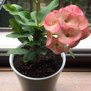 ハナキリン 八福神。 家の中に入れたら咲き出した😊 でもこんな薄い色の、ウチにあったかな?😅