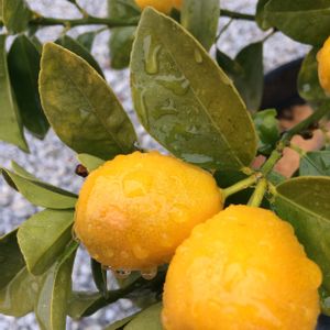 金柑と雨 2020年、新年は家族喧嘩で盛大に幕開けでした...(笑) 2017年1月に2年生で購入の福寿。雨露に濡れて美味しそう。生食で先ずは頂くつもり♪