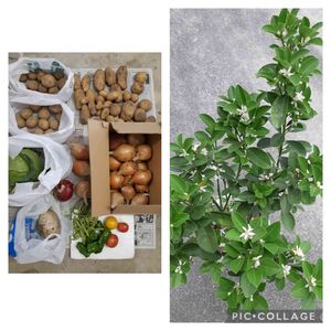 何故か一日に3ヶ所の親戚 友だちからの頂き物が…… 一方からのは冷蔵中につき撮影には参加なし😁 ジャガイモの出来が悪い年だったそうですが結構いいのをいただいています😄 大実金柑の花が咲いています😄大実はいくつなるでしょうか⁉️