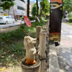 こんばんは🌆 この度トシの部屋に新しい仲間が加わったので紹介させてください。 玉の助(たまのすけ)😼 『つれてってネコ』のコンセプトで持ち運びやすいサイズに。 仲良くさせてもらっている備前焼作家さんが作られたものですにゃ。 ゴロたんとは毛色の違う玉殿をよろしくお願いします😁 西川緑道公園にて