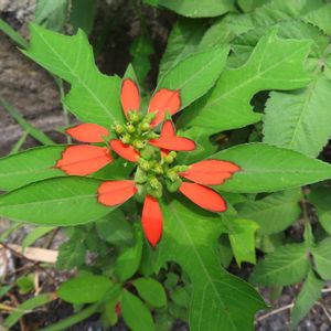緑の葉の中に刺激的な赤いお花、ではなく葉の一部。 パチリ 「サマーポインセチア」でした。