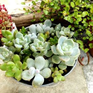ちょっぴり徒長の多肉の 寄せ植えです(^ー^)♡ ・白牡丹 ・月美人 ・月の王子 ・虹の玉 ・群雀 7/28コメント追加☟ 初の100越えありがとう ございます(*‘ω‘ *) これからもよろしく お願いしますm(_ _)m