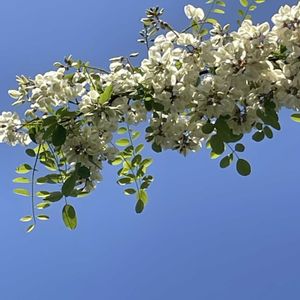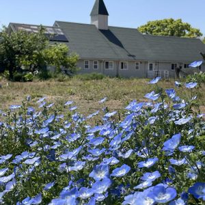5月第一聖日 教会の裏のお宅のネモフィラと みかん(多分ネーブルだったかと)の花が満開に♡